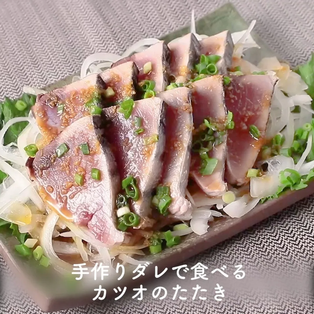 ③手作りダレで食べるカツオのたたき