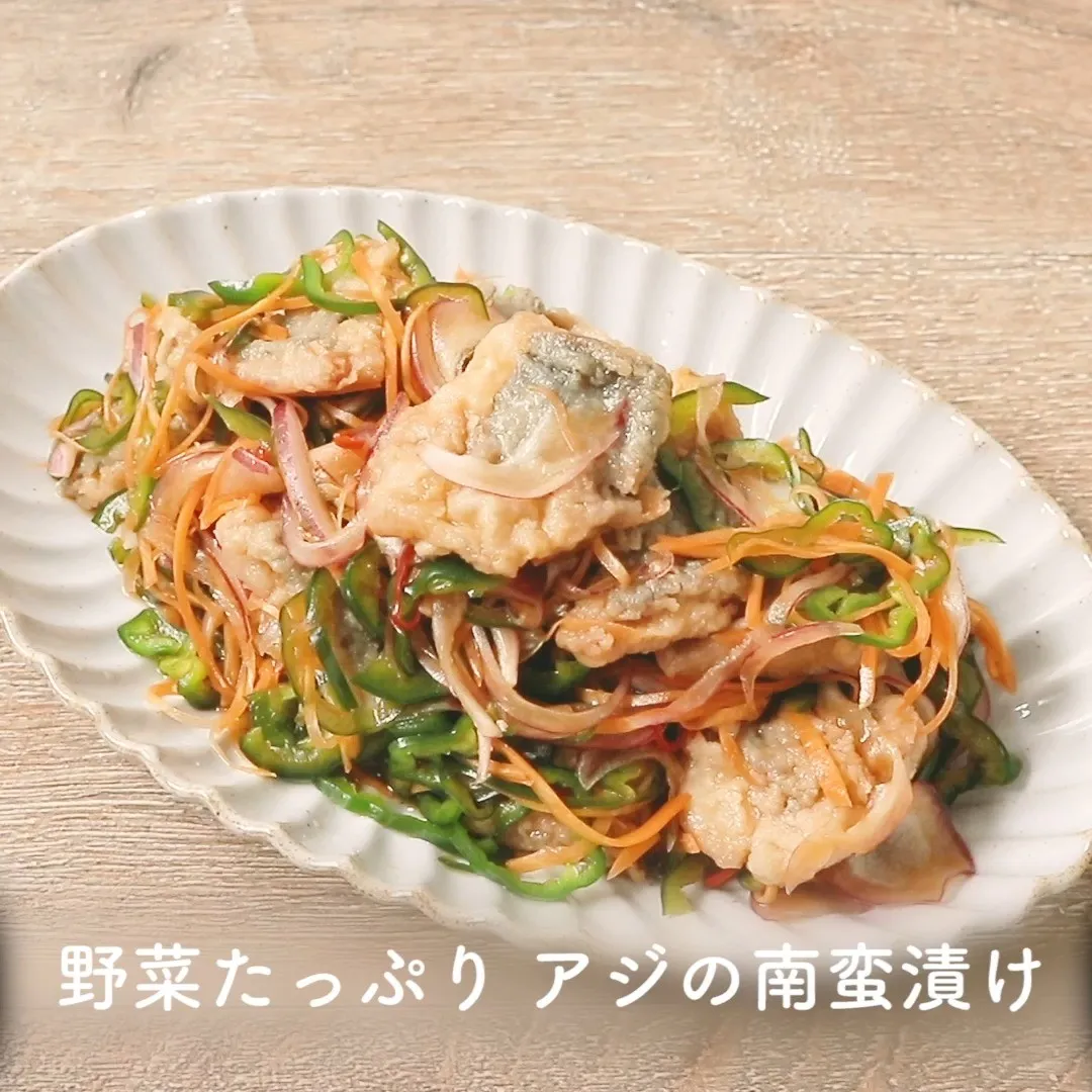 ④野菜たっぷり アジの南蛮漬け