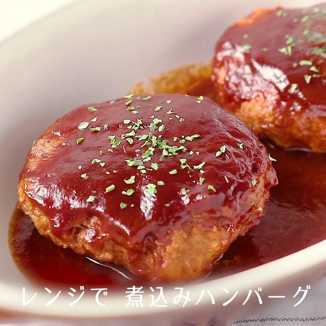 ③レンジで 煮込みハンバーグ