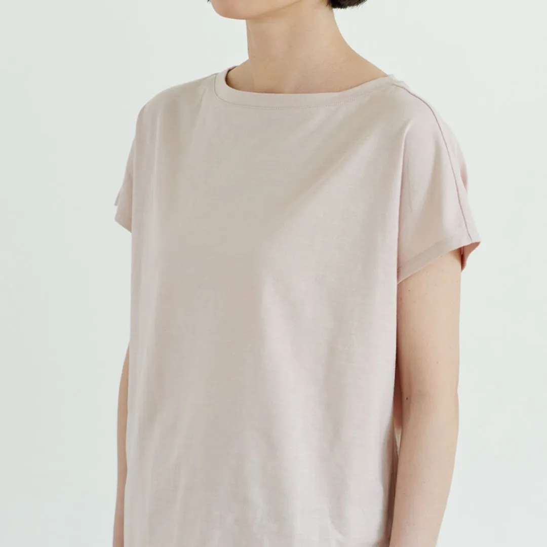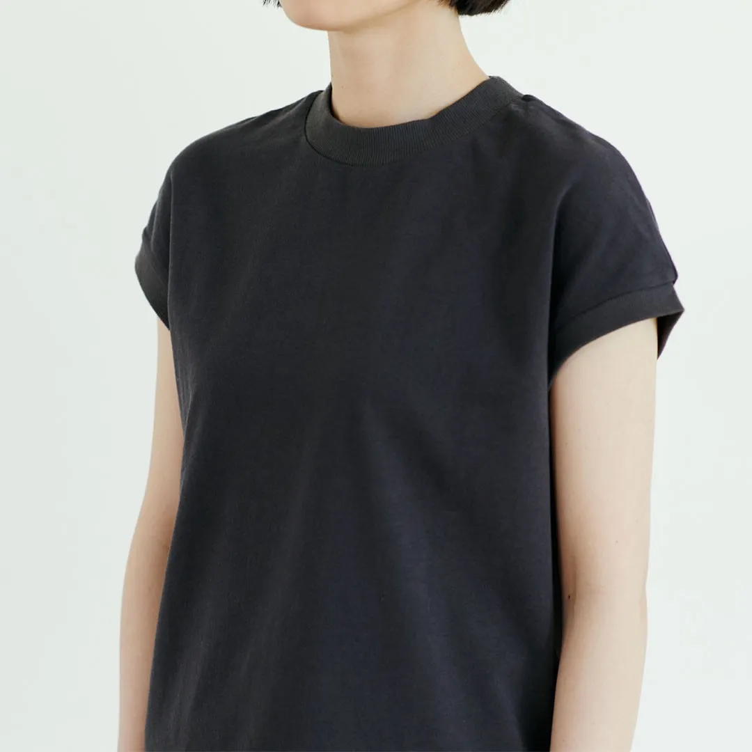 適度なハリ感があり、厚手で透けにくいTシャツです。ドライな表面感なので、厚手ながら盛夏にも着られます。