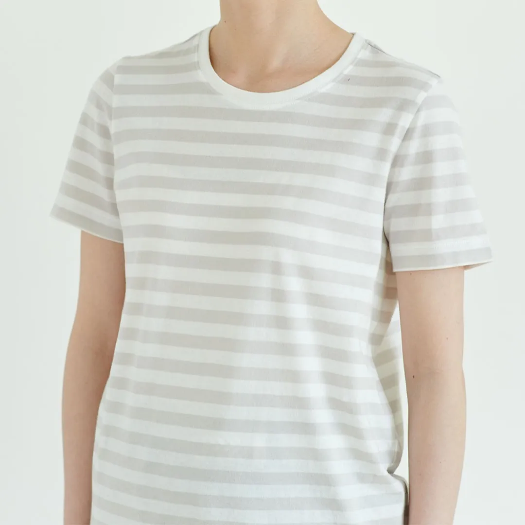 一枚で着ても透けにくい、程良い厚みのTシャツです。毛羽立ちを抑えたなめらかな表面が特長です。