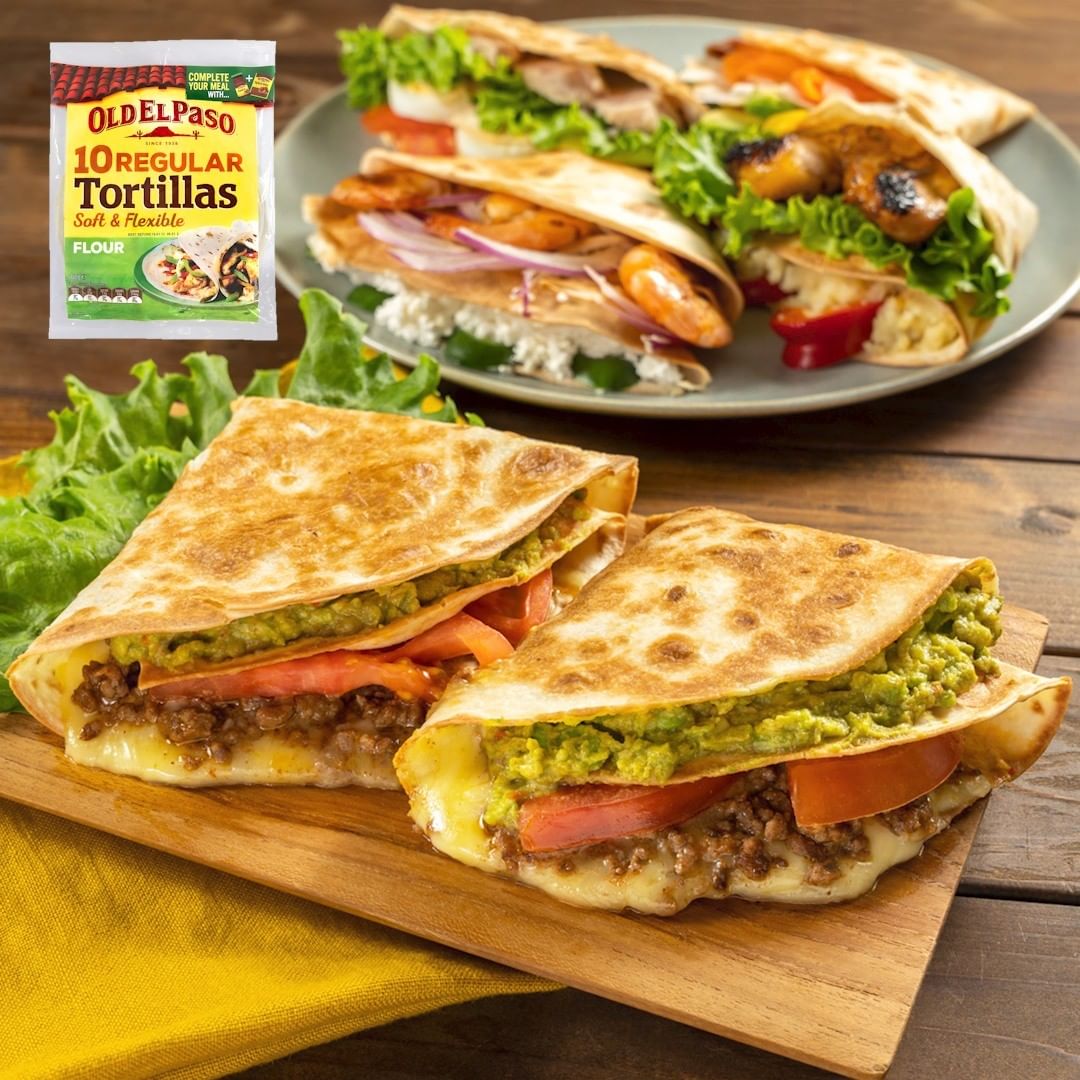 ホットプレートでもフライパンでも♪おうちで簡単!とろけるチーズのトルティーヤサンドのご紹介です。「オールドエルパソ フラワートルティーヤ」に具材をのせて、折りたたむだけですぐ完成!こんがりと焼いた「オールドエルパソ フラワートルティーヤ」にとろけるチーズやタコミートがよく合い、手が止まらなくなるおいしさです!お好きな具材にアレンジして、家族やお友達とおうち時間を楽しんでくださいね。