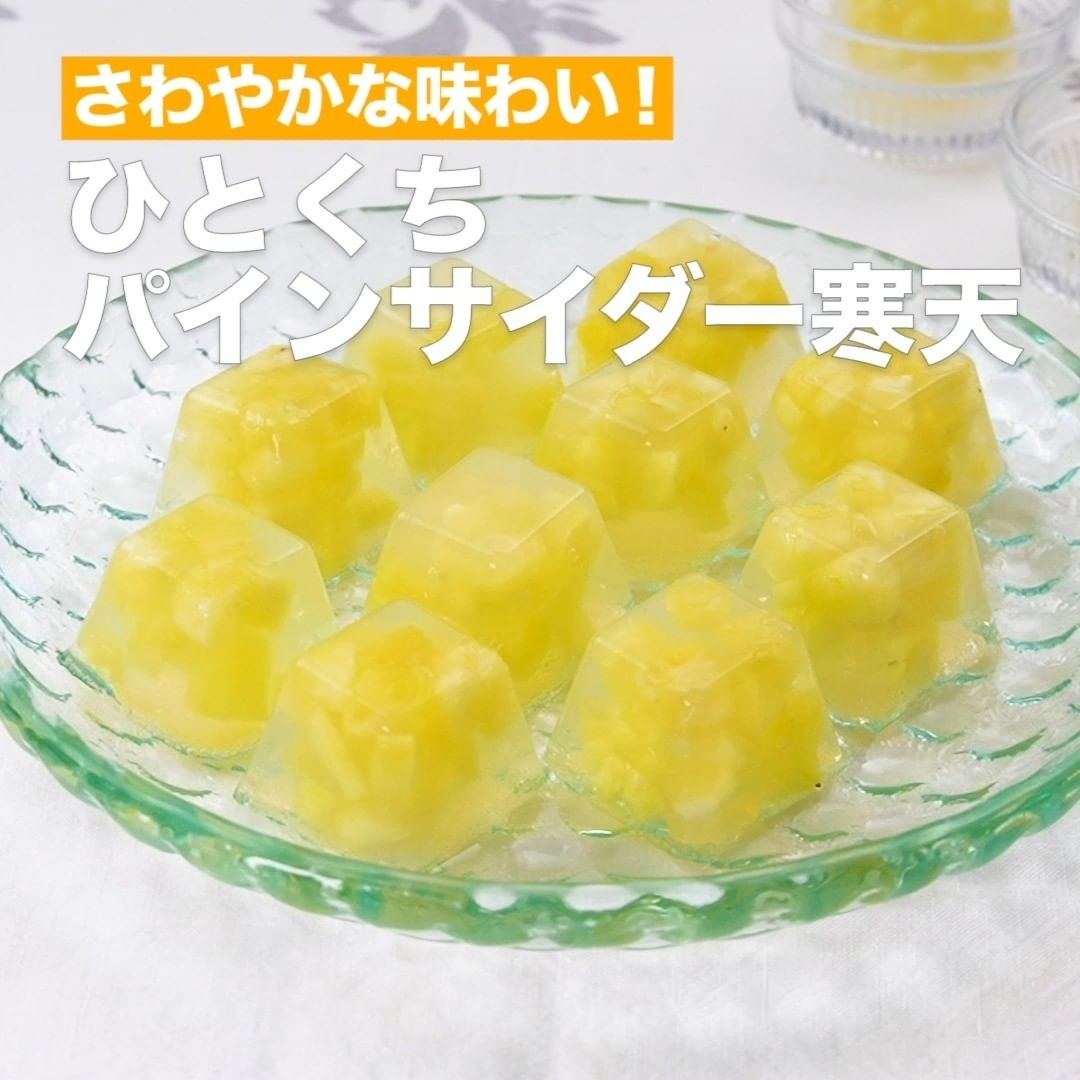 寒天と製氷皿を使ってとっても簡単♪カットパイナップルにサイダーを合わせたひとくちサイズのかわいいデザートです。材料も少なく作れるのがうれしいポイント!