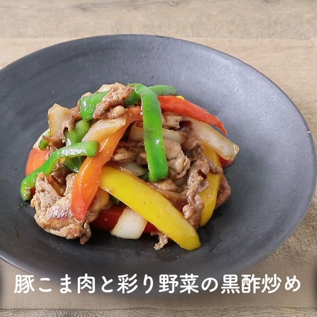 ②豚こま肉と彩り野菜の黒酢炒め