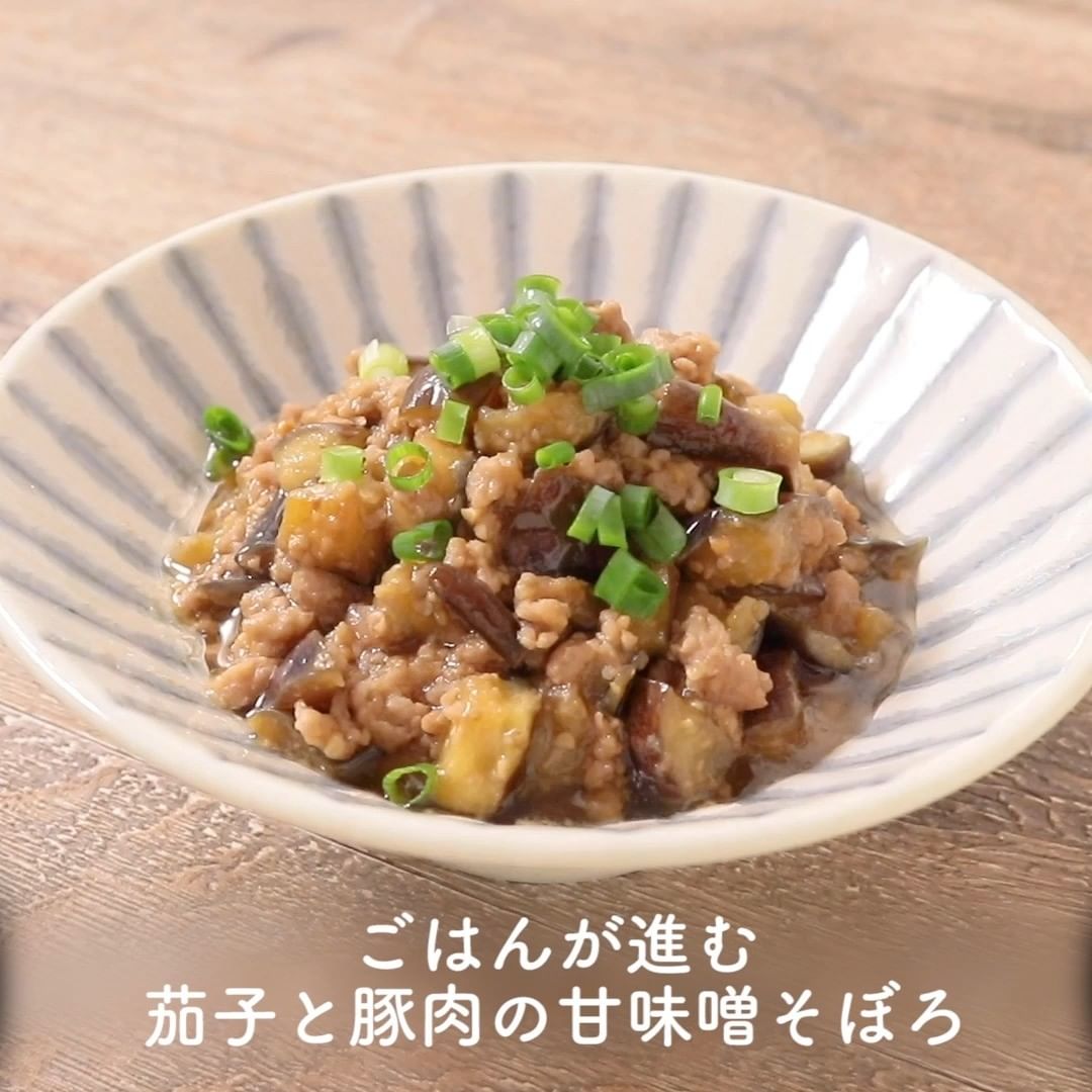 ①ごはんが進む 茄子と豚肉の甘味噌そぼろ