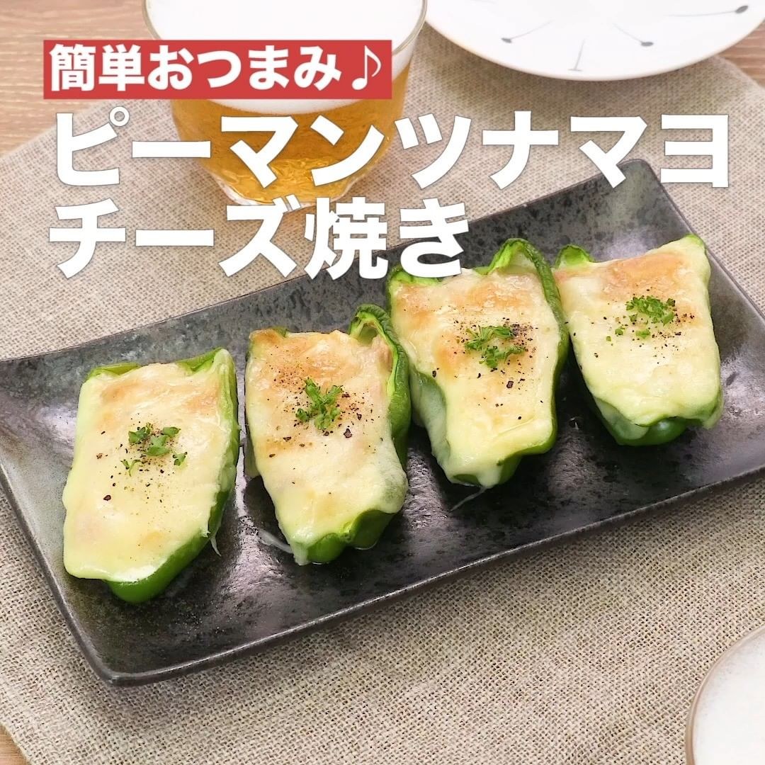 ③<簡単おつまみ♪ピーマンツナマヨチーズ焼き>