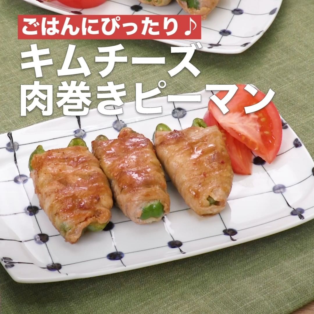 ⑥<ごはんにぴったり♪キムチーズ肉巻きピーマン>