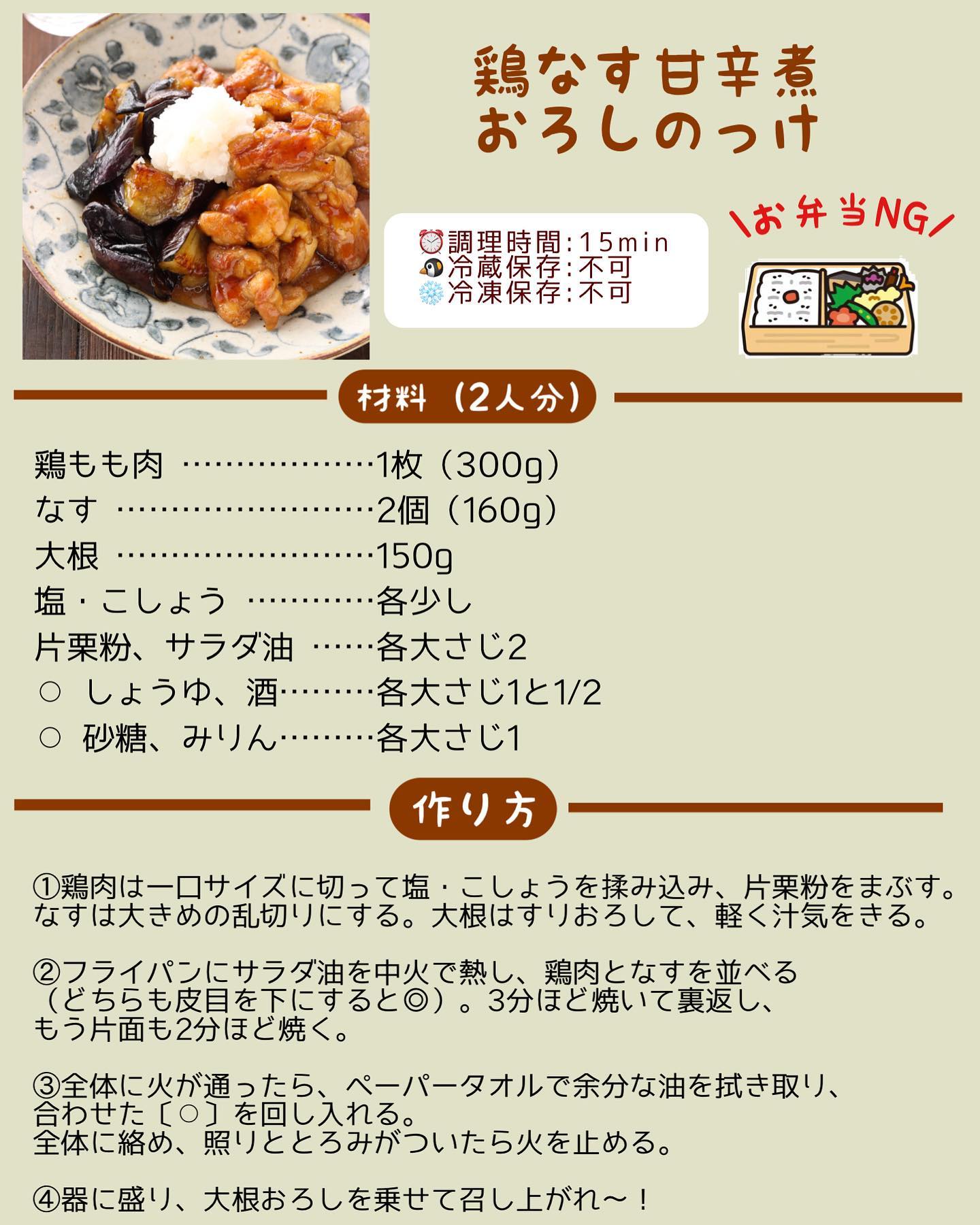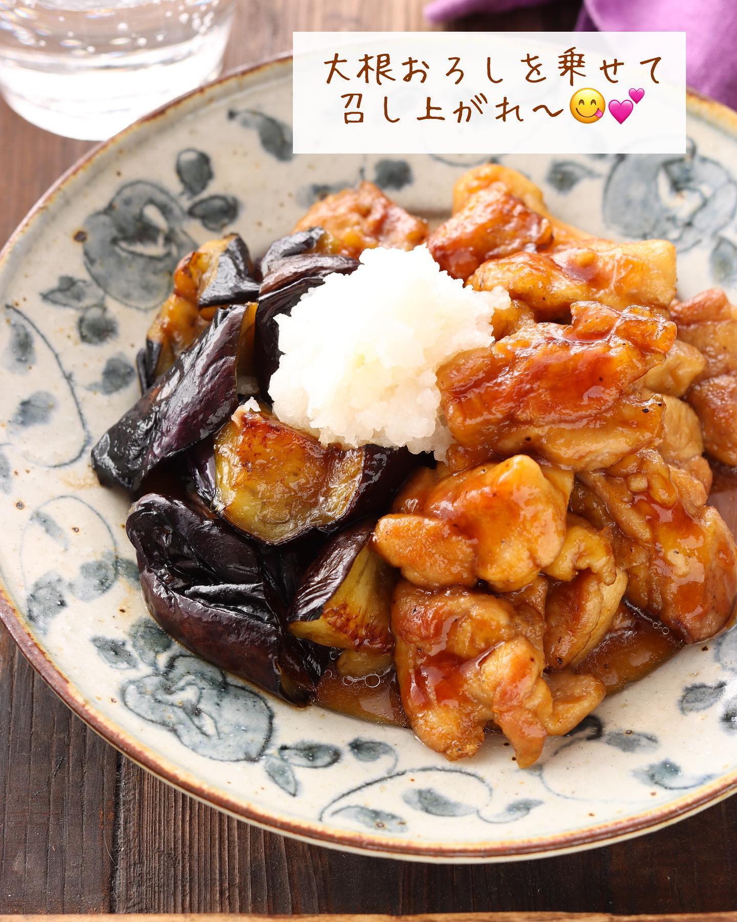 𓎩 #鶏なす甘辛煮おろしのっけ