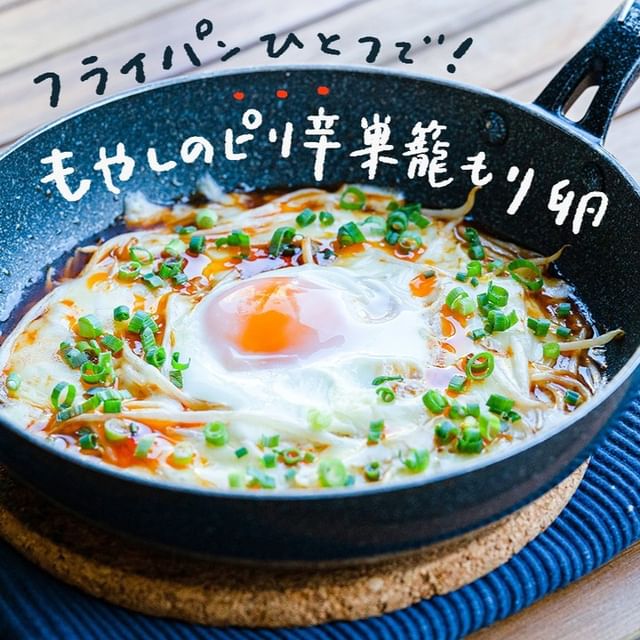『フライパンひとつで!もやしのピリ辛巣籠もり卵』