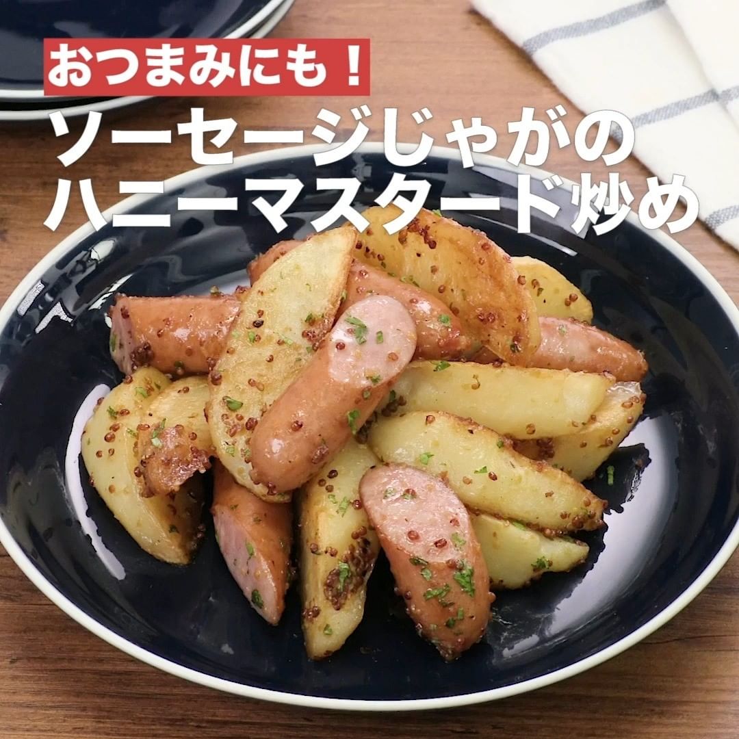 ④<おつまみにも!ソーセージじゃがのハニーマスタード炒め>