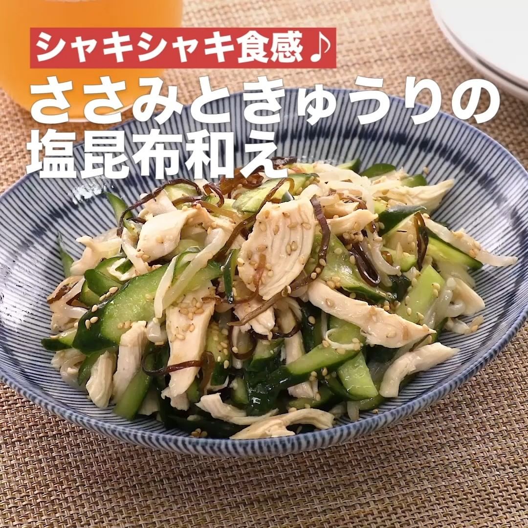 ④<シャキシャキ食感♪ささみときゅうりの塩昆布和え>