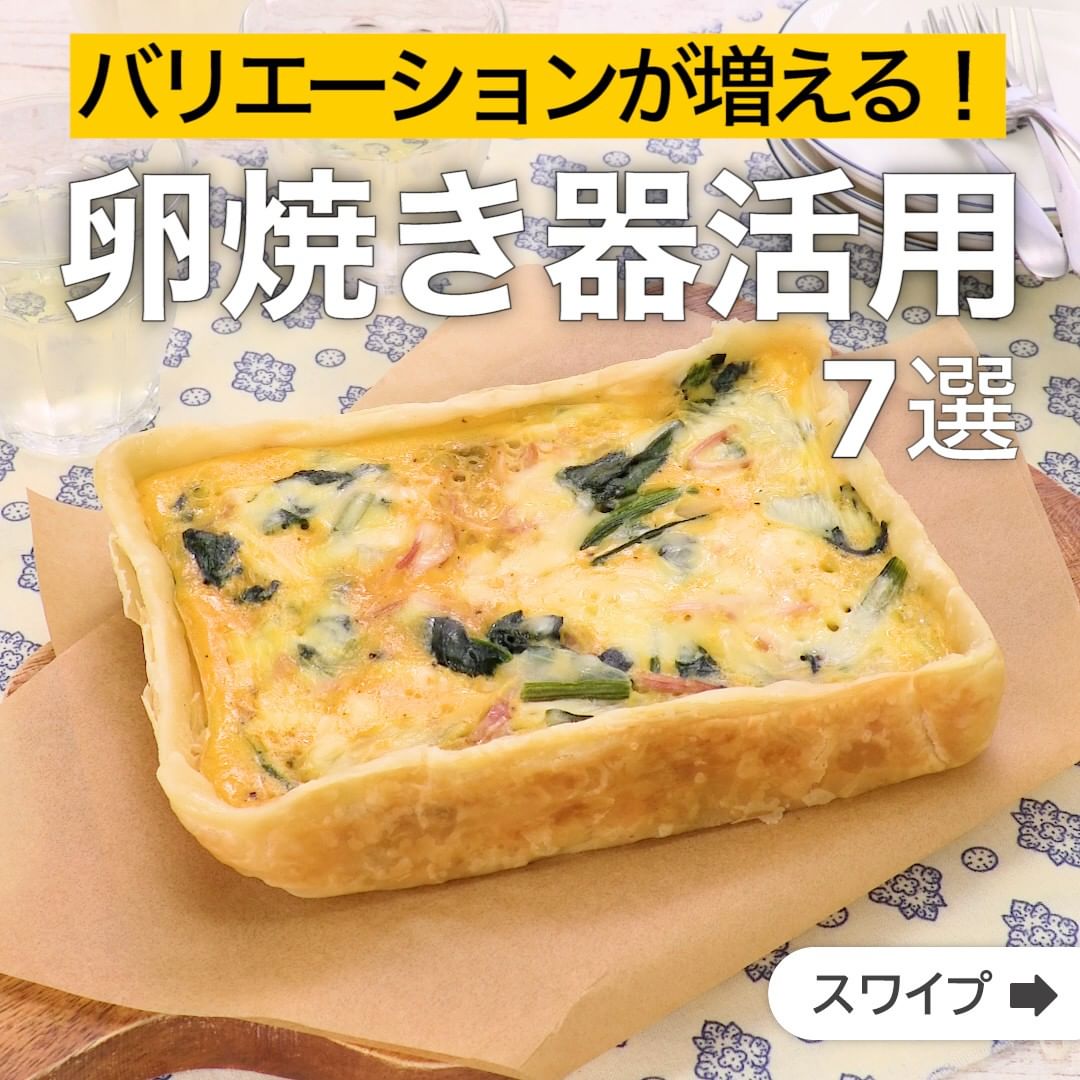 人気のサクサクパイのキッシュが卵焼き器で焼くだけで作れます♪生地を作る必要なし!冷凍パイシートを使うから簡単です。具材はキノコやサーモン、じゃがいもやかぼちゃなどに替えても絶品♪ お好みの形に切ってお召し上がりください。
