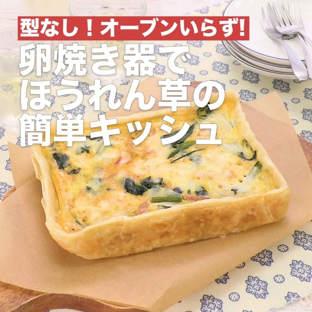 ①<型なし!オーブンいらず!卵焼き器でほうれん草の簡単キッシュ>