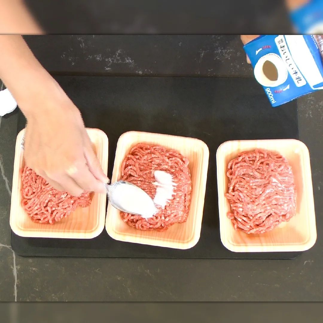 ★牛乳が肉の臭みを吸収!お手頃お肉でもハンバーグの味が UP!
