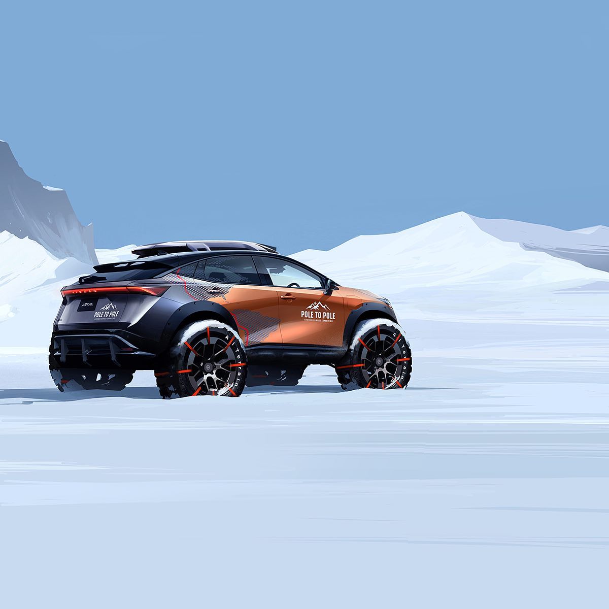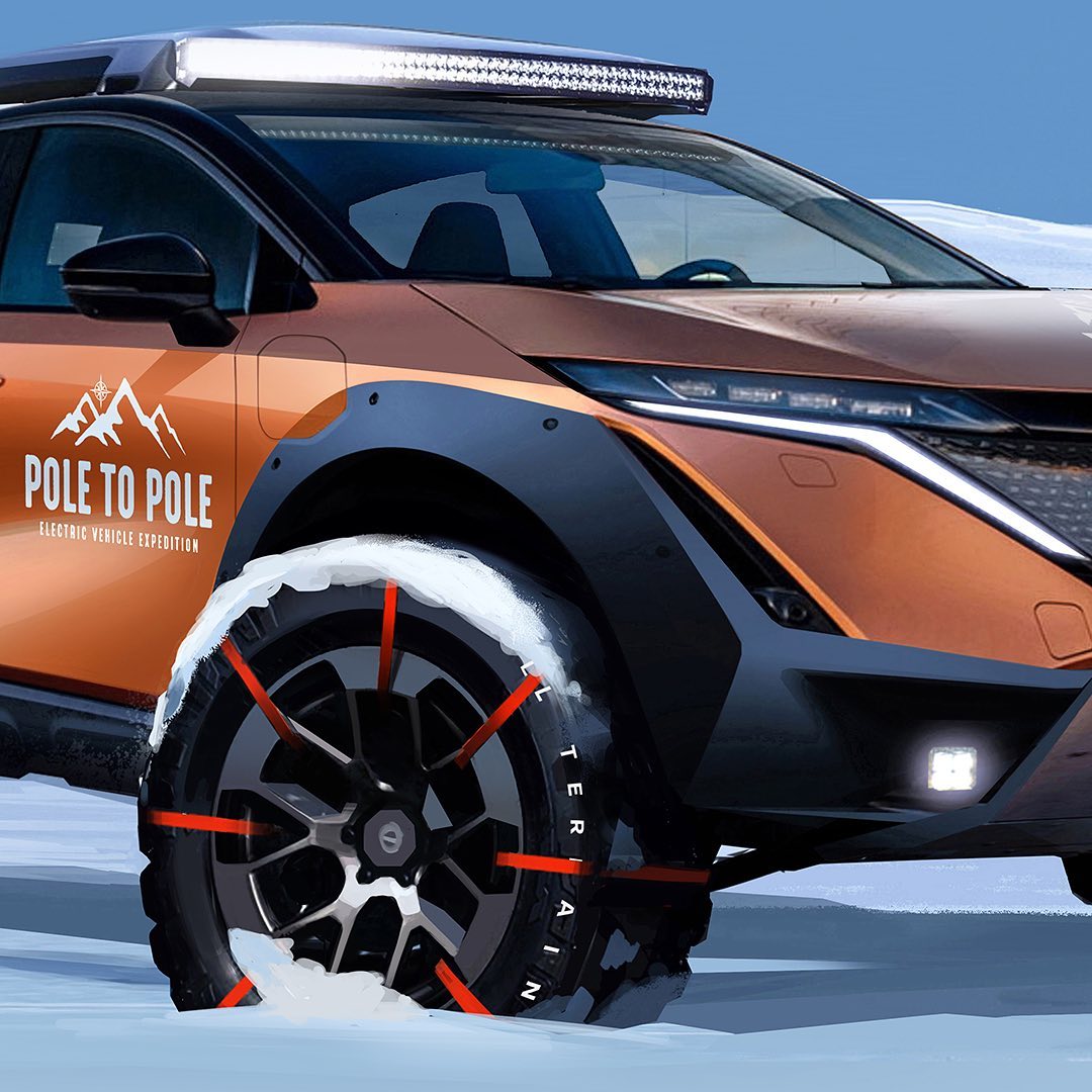 Take the #NissanAriya e-4ORCE, raise the suspension, switch to big snow tires, add some protective body kit…And we’re set to take on 27,000km of extreme terrain and temperatures in a world-first expedition! #PoletoPoleEV #Nissan