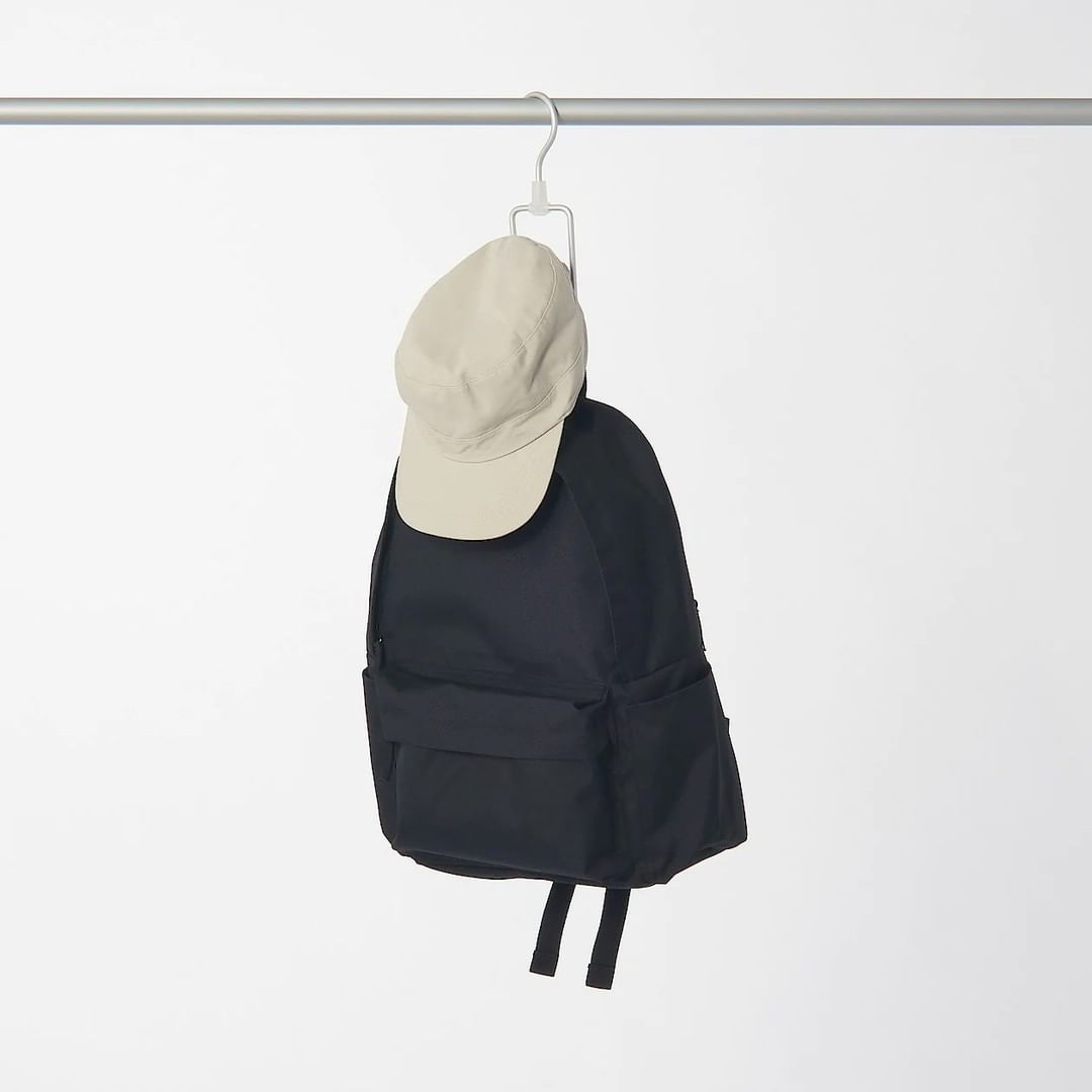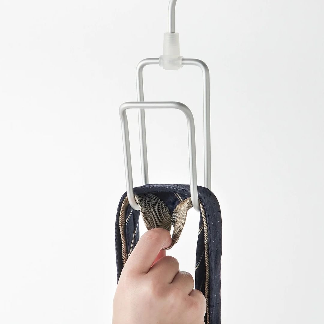フック部分に複数枚重ねたネクタイやスカーフを、上下手前の3方向から取り出せるように形状を工夫しました。リュックやバッグを掛けて使うこともできます。