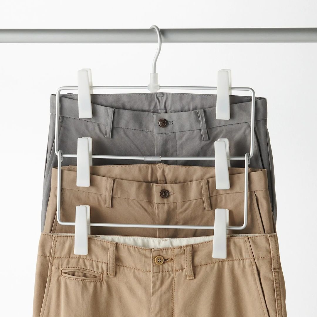 パンツやスカートを掛けられるピンチハンガー。掛けて収納すれば、たたみジワがつかず、出し入れしやすくなります。1段タイプと、より省スペースで収納できる3段タイプを揃えています。