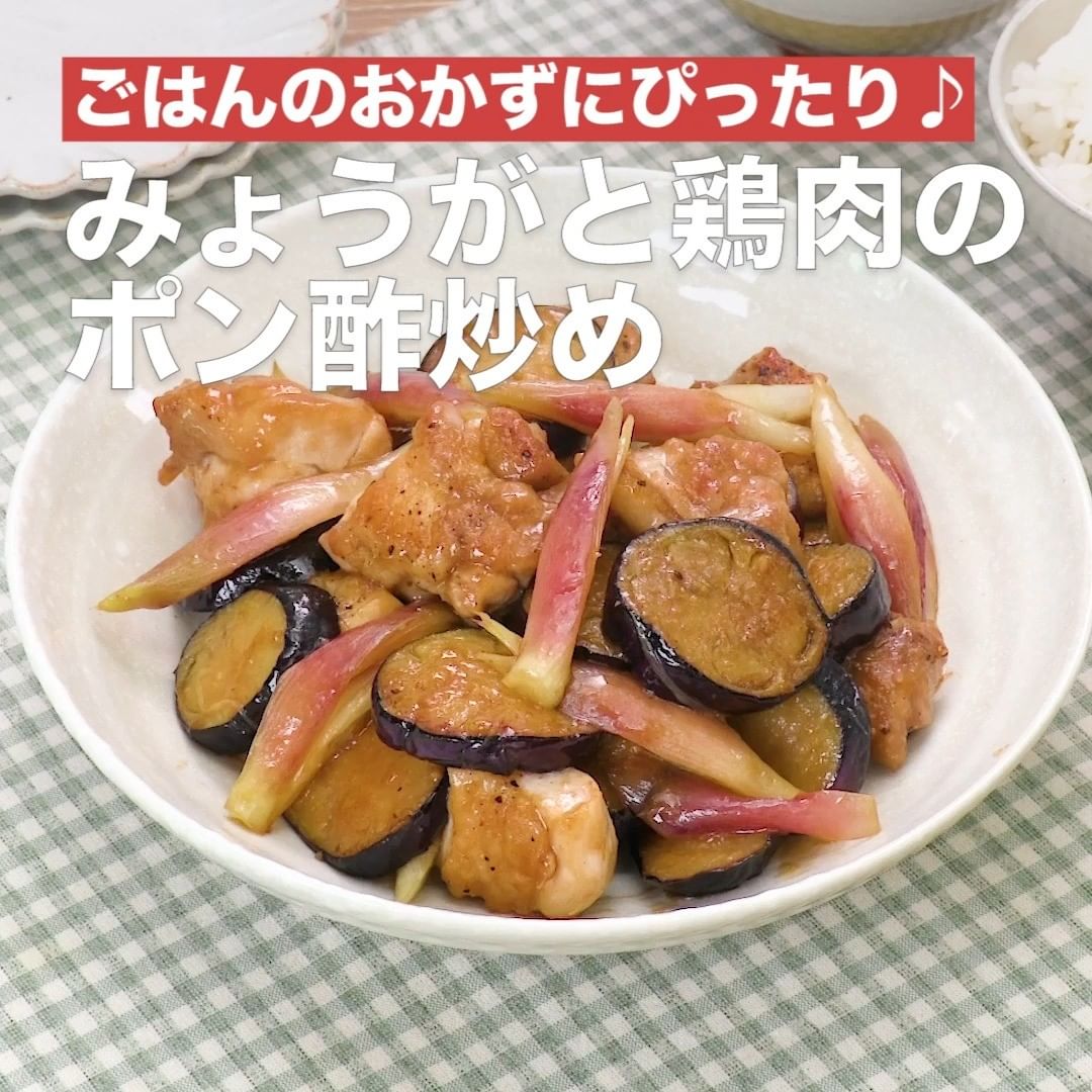 ジューシーな鶏肉となす、風味豊かなみょうがをポン酢でさっぱりと炒め合わせた主菜レシピのご紹介♪みょうがは大きめに切って食べ応えを出しましょう!ポン酢を使うことで簡単に味が決まるので、料理が苦手な方にもオススメです!お好みの野菜でアレンジしてみてください。