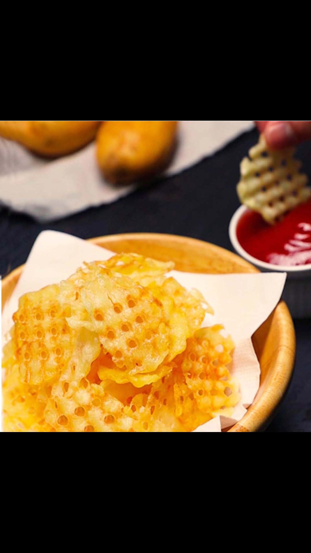 【〇〇を使うだけであのポテチが作れちゃう!?】カリッカリ♪やみつきワッフルポテトチップス / Waffle Potato Fries