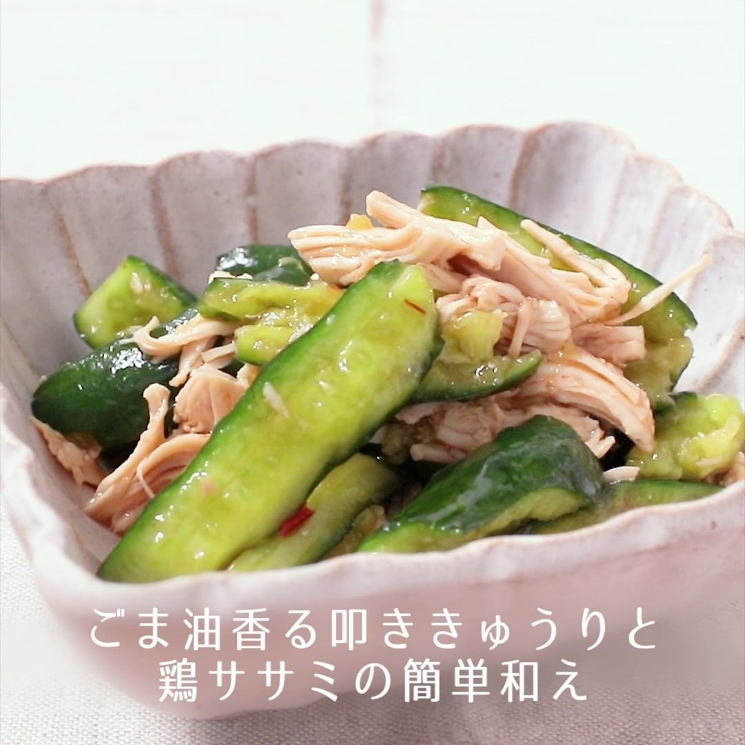 ①ごま油香る 叩ききゅうりと鶏ササミの簡単和え