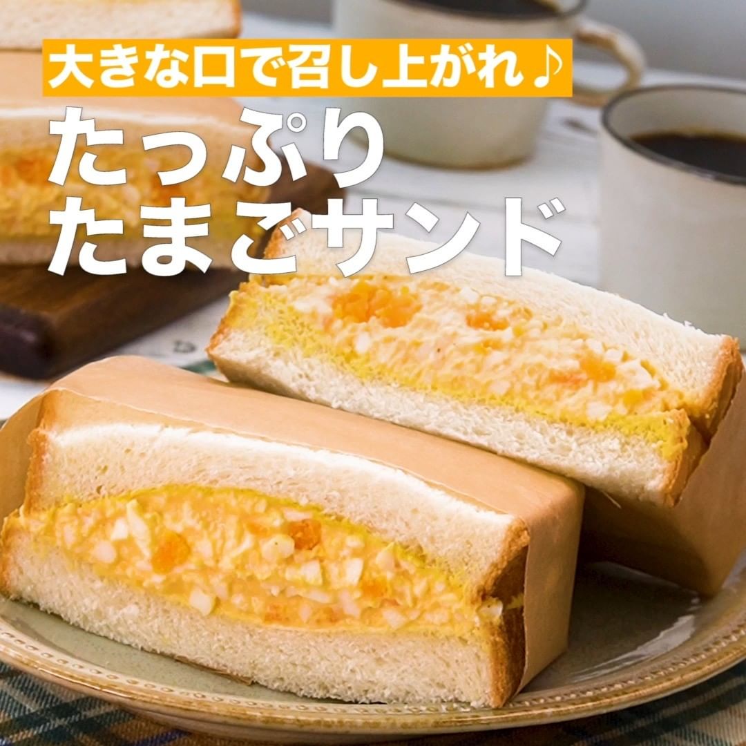 ボリューム満点!ふわふわのパンに濃厚な卵サラダをたっぷりとはさんだ絶品サンドイッチの作り方をご紹介します。隠し味にヨーグルトを入れることで、濃厚だけど重たすぎない卵サラダに仕上げました。
