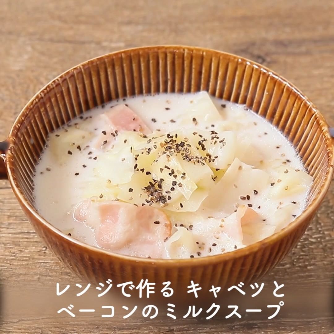 ⑤レンジで作る キャベツとベーコンのミルクスープ