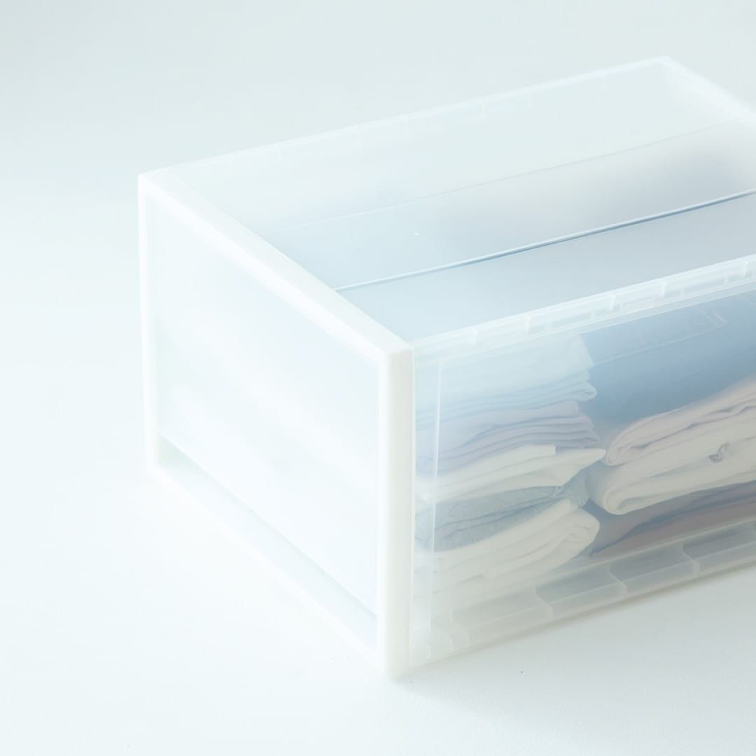 パーカーやボトムスなど、かさばる衣料品を収納できる大型の収納ケース。