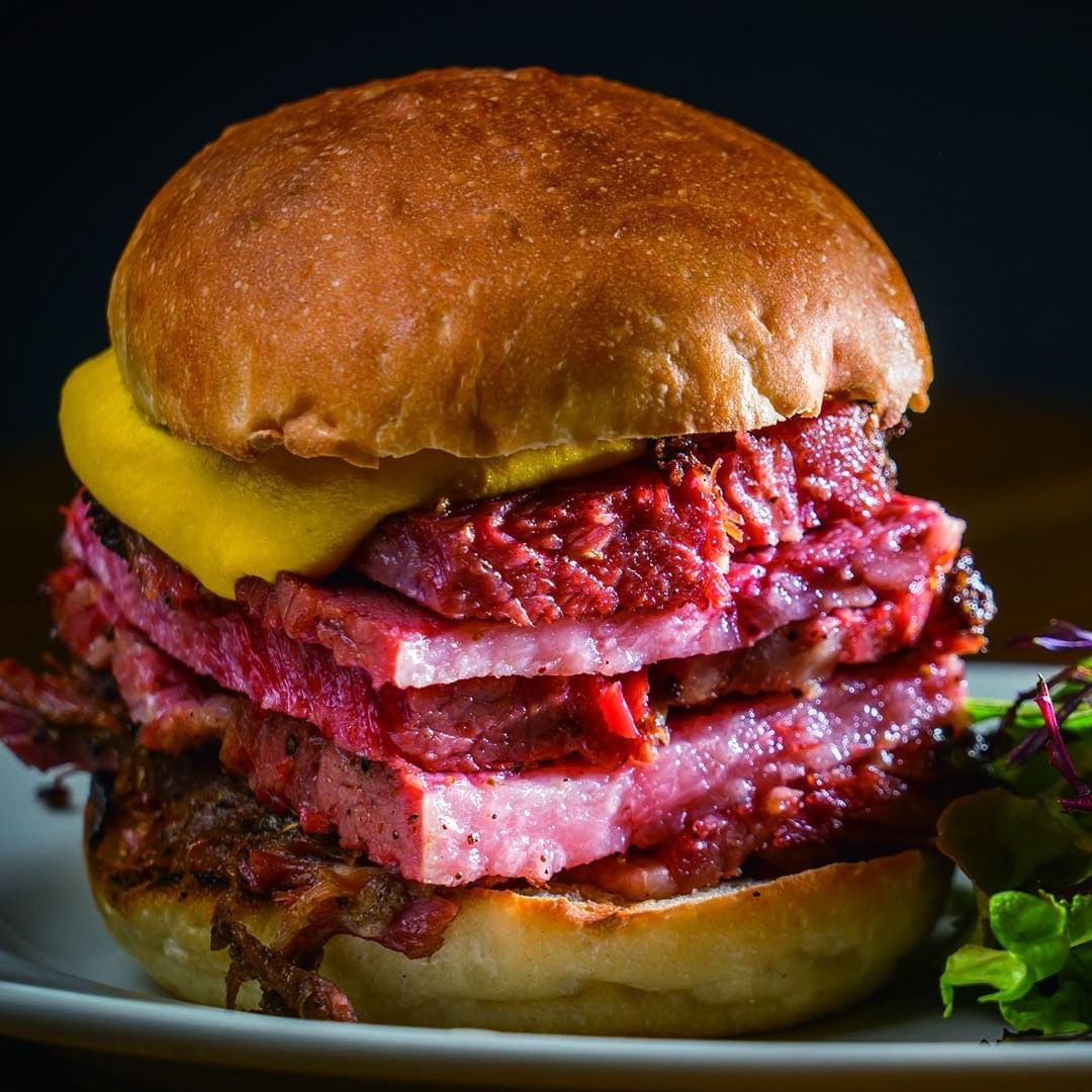 漬けし、塩気を抜いて丸1日寝かせてから炭と薪で燻製に。手間ひまかけて肉の旨みを引き出した究極のパストラミサンドだ。