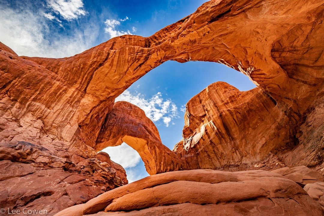 Photo by @leecowenpics: “Last summer I made a cross country road trip with my daughter and we stopped at five national parks and many other amazing sites. This image is from Arches National Park. When I’m fortunate enough to visit iconic locations, I always try to capture a unique perspective that’s just a little bit different from the millions of snapshots that are posted. In this composition, my goal was to show the enormity of the Double Arch by contrasting the low vantage point with the tall subject. To capture the vibrancy of the red rocks backed by the blue skies, and I used the flat rock in the foreground to block all the tourists climbing around in the arch!” #ShotOnCanon