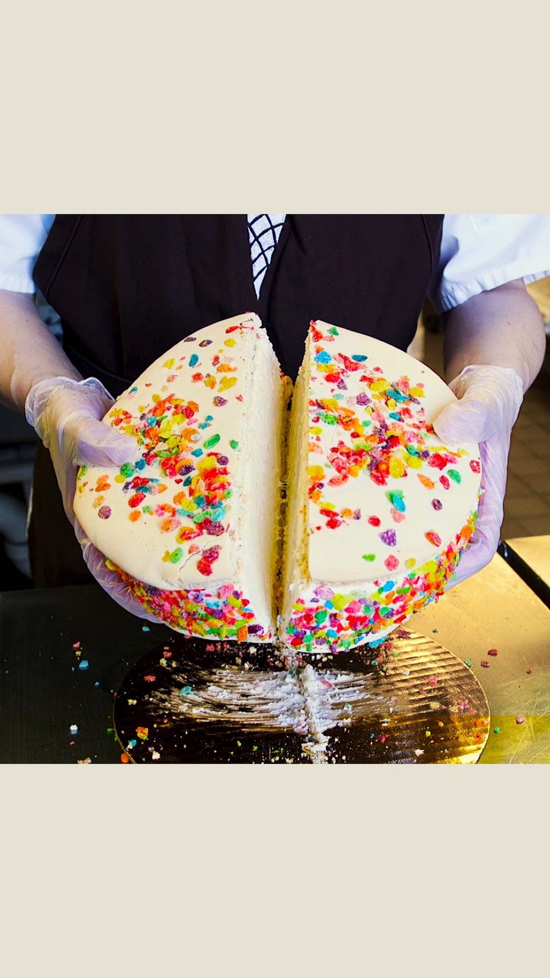 「The Fruity Pebble Mac Daddy 6″ Ice Cream Cake」は、びっくりする巨大サイズのマカロンアイスが名物!