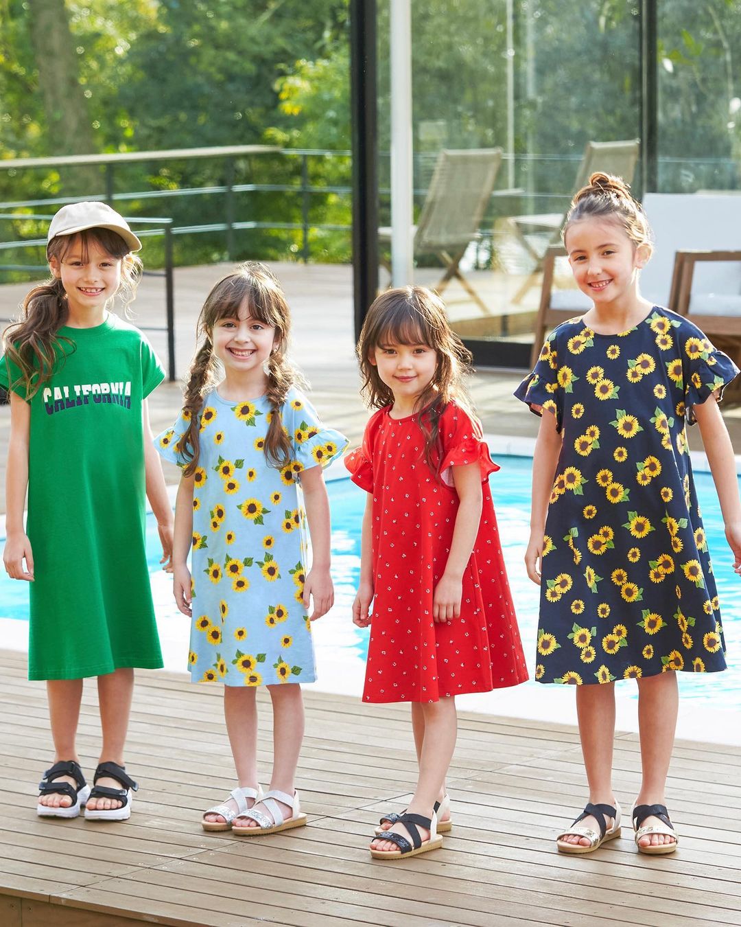 GIRLSフリルスリーブカットソーワンピース(半袖)(ヒマワリ)