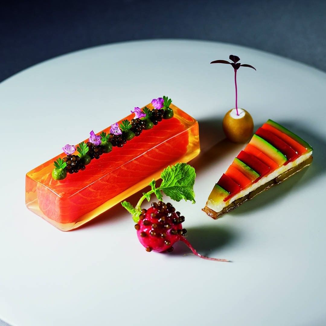 トマトで仕立てたアスピックの精緻な佇まいに息を呑む