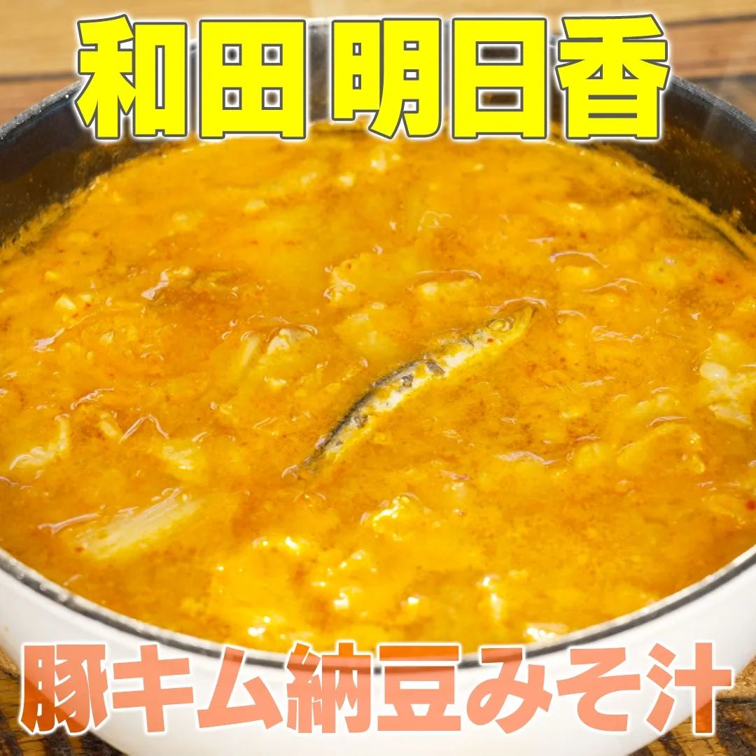 @Kajiyarou Kajiyarou: 和田明日香さんの『豚キム納豆みそ汁』 ① 1cm 幅に切った豚バラ肉(100g)をフライパンで焼く ② キムチ(60g)を入れて混ぜながら焼く ③ 米の 2022-06-14 和田明日香さんの『豚キム納豆みそ汁』 ① 1cm 幅に切った豚バラ肉(100g)をフライパンで焼く ② キムチ(60g)を入れて混ぜながら焼く ③ 米の研ぎ汁(800ml)を入れて煮干し(3 本)を加える ④ 味噌(大さじ 4)を入れて、混ぜた納豆を 1 パック加え煮込み完成! #家事ヤロウ #リアル家事 #和田明日香 #バカリズム #中丸雄一 #カズレーザー #cooking #food Ciao, Nihon.