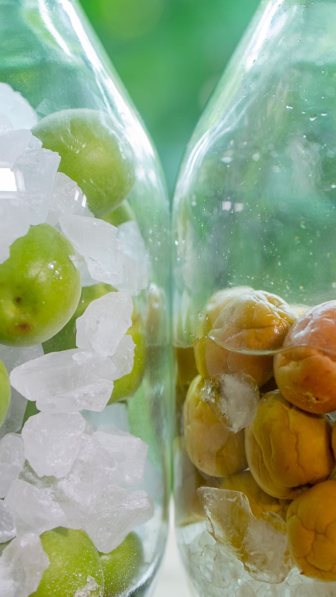 1. Remove stems from ume. Rinse with water in a bowl. Drain well.