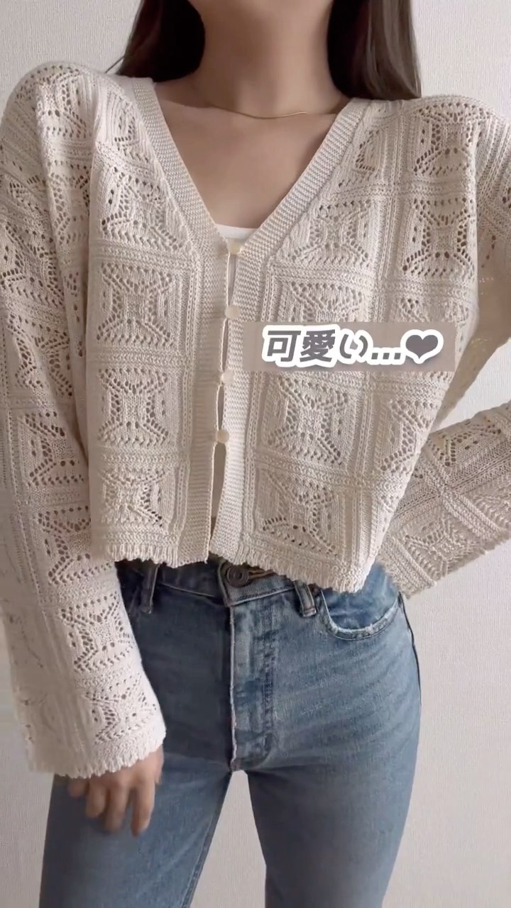 #レーシークロップドカーディガン