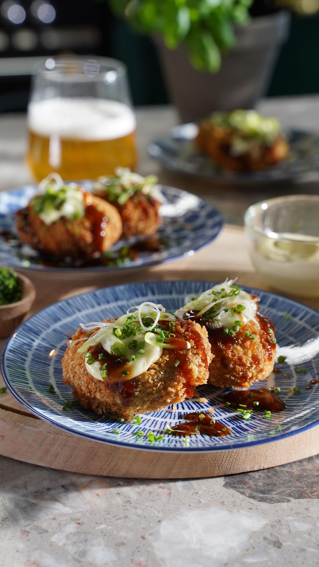 サステナブルなVÄRLDSKLOK/ヴェルドスクロック プラントベースひき肉を使用したコロッケ。ひとひねり加えたソースをのせたサクサクコロッケは、簡単なのにみんなが喜ぶ一品です。