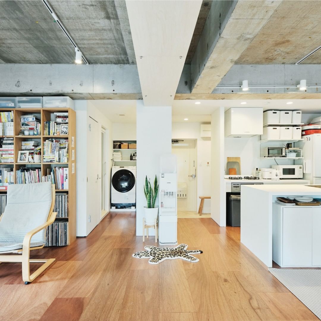 横浜市旭区にある横浜若葉台団地。その一角に暮らすOさんご家族は、「無印良品のリノベーション」が手がけた「リノベーション済みの完成品」を購入されました。白を基調にした室内は、コンクリート剥き出しの天井がアクセント。ご夫妻がセレクトしたインテリア類が調和して、