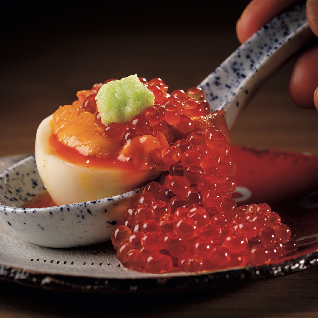 とだか”の1品目といえば、な「ウニ・オン・ザ・煮卵」は、もちろん虎ノ門でも味わえる