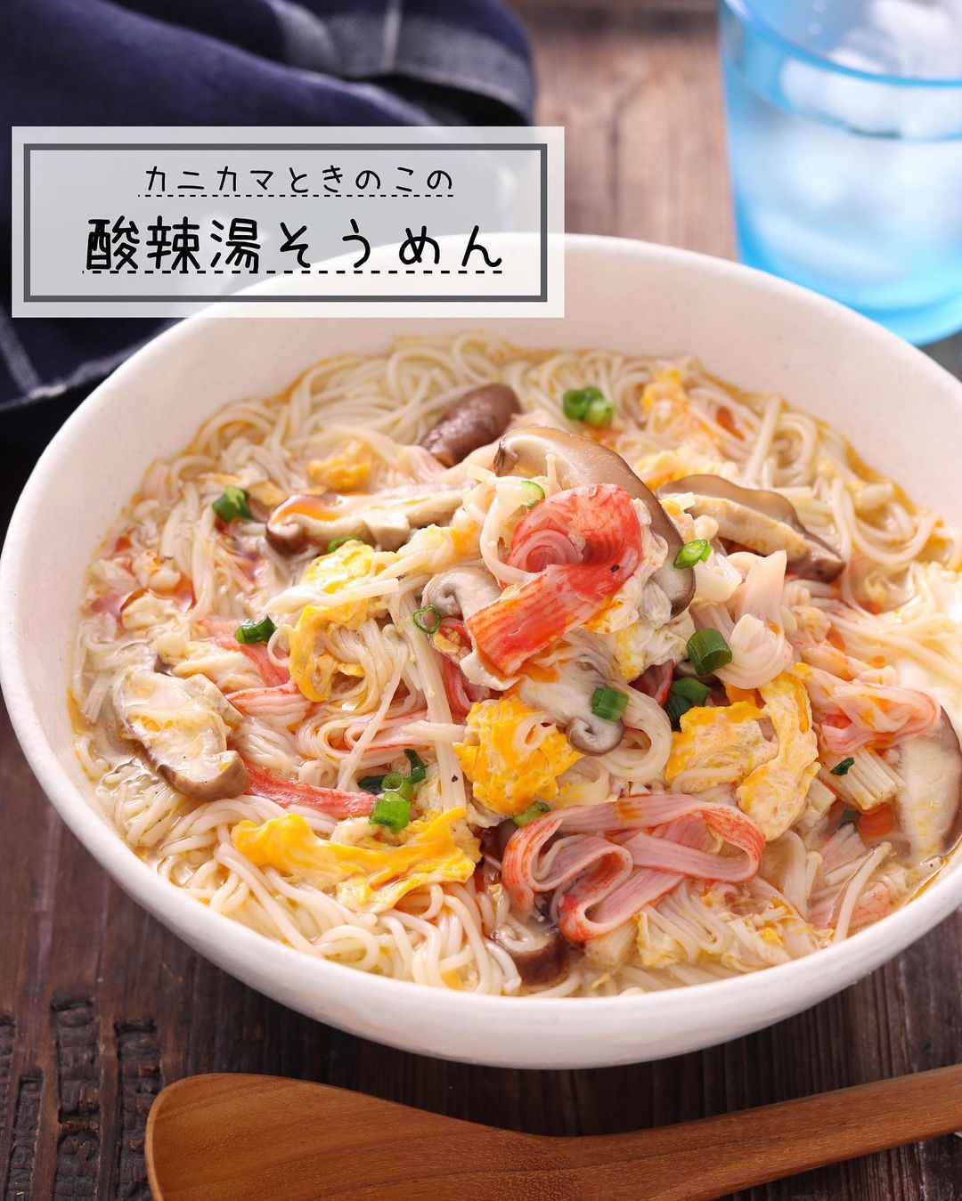 𓎩 #カニカマときのこの酸辣湯そうめん