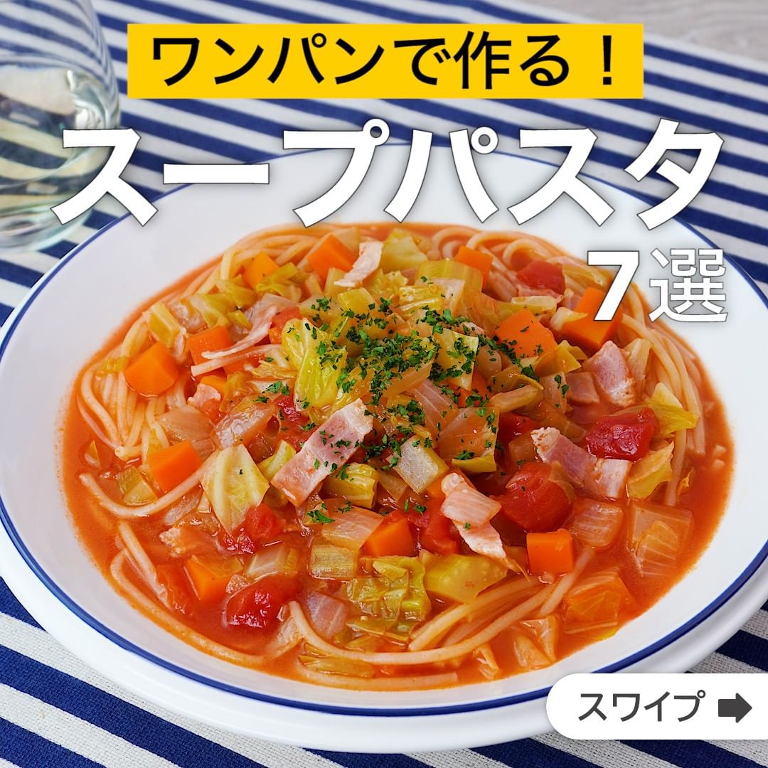 ①<ワンパンで仕上げる!ミネストローネ風スープパスタ>