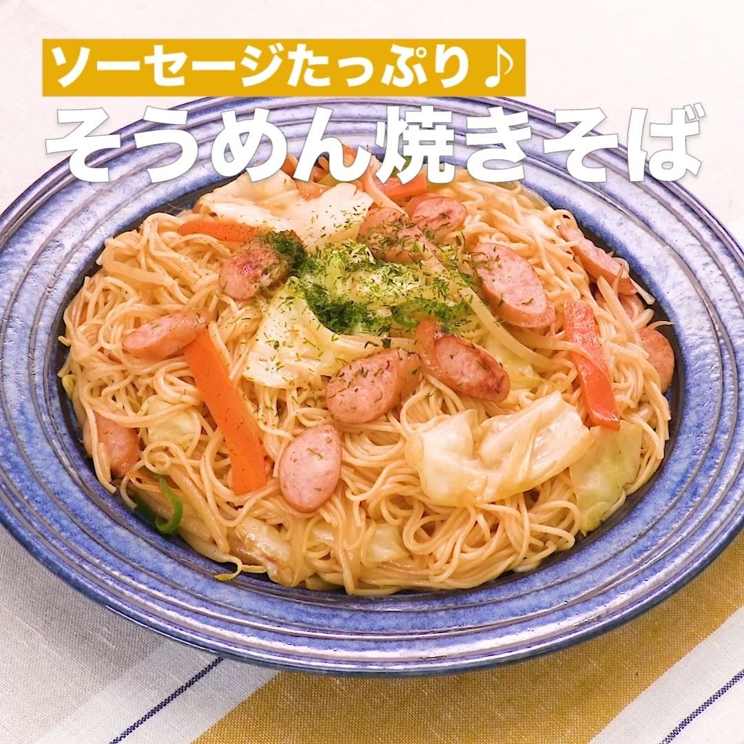 ②<ソーセージたっぷり♪そうめん焼きそば>