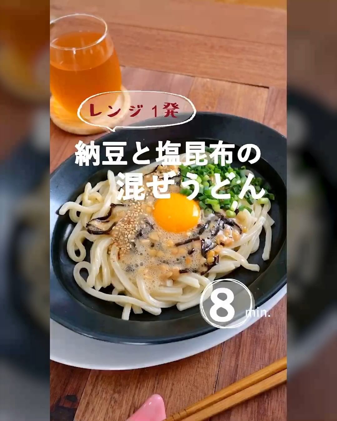 『【レンジ1発】納豆と塩昆布の混ぜうどん』