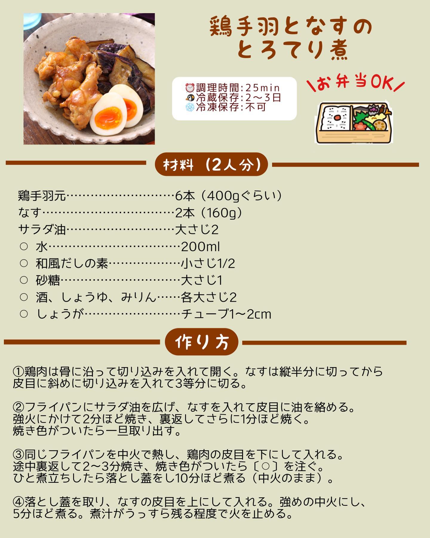 𓎩 #鶏手羽となすのとろてり煮