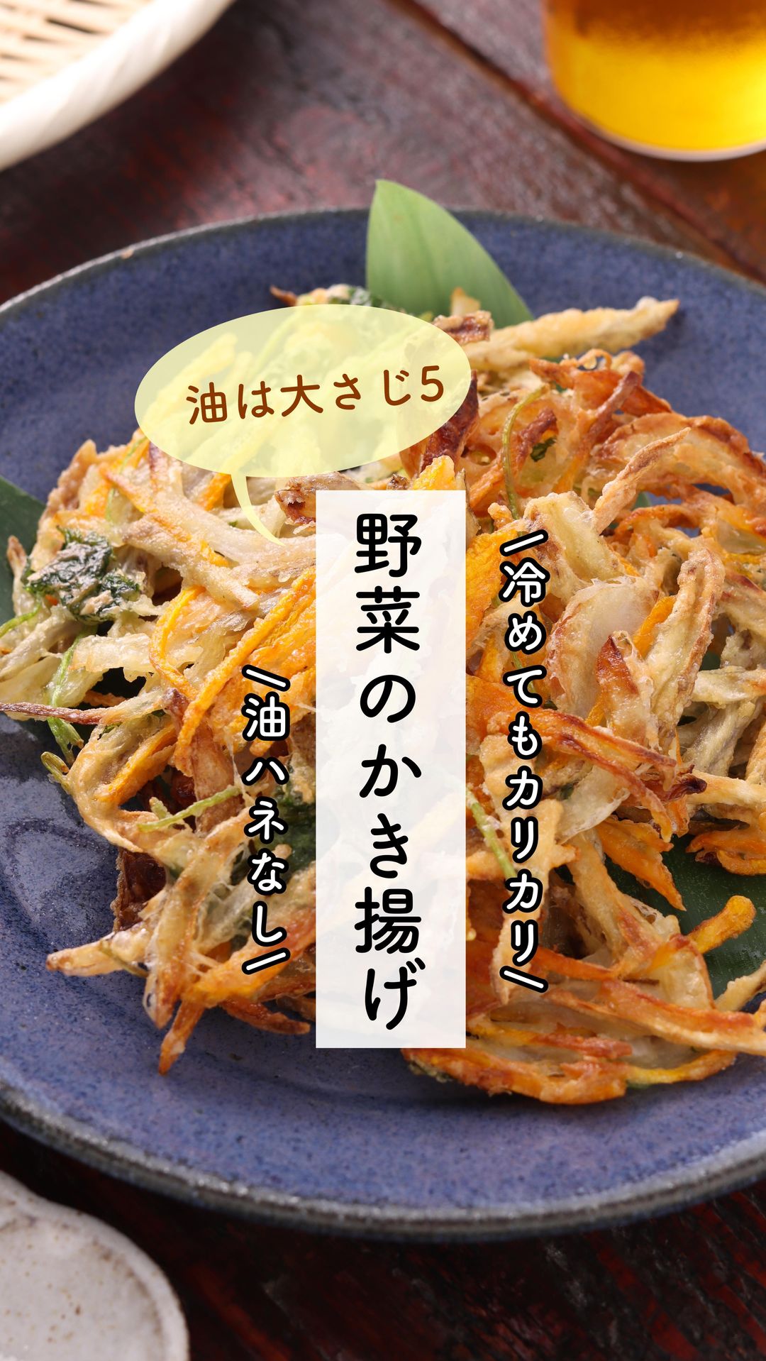 今日作った、油大さじ𝟻で作る野菜のかき揚げと