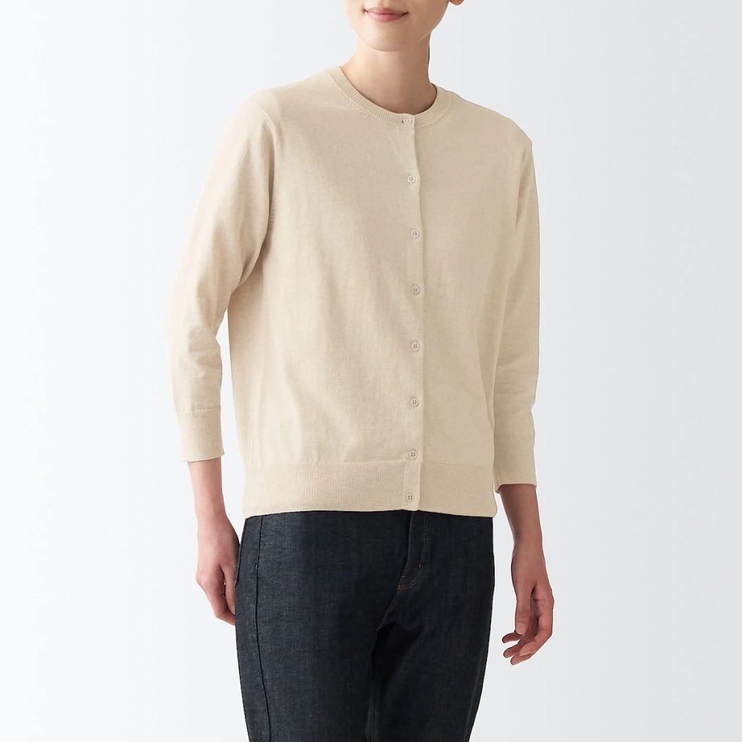 さらりと清涼感ある肌触りが特長の『UVカット強撚ショートカーディガン(七分袖)』『UVカット強撚クルーネックカーディガン(七分袖)』は、軽く羽織れて、紫外線遮蔽率は80%以上。