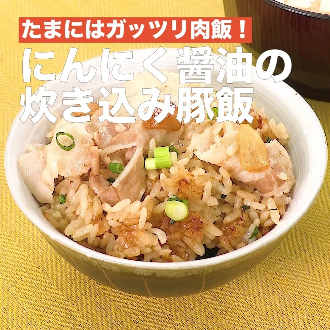 ②<たまにはガッツリ肉飯!にんにく醤油の炊き込み豚飯>
