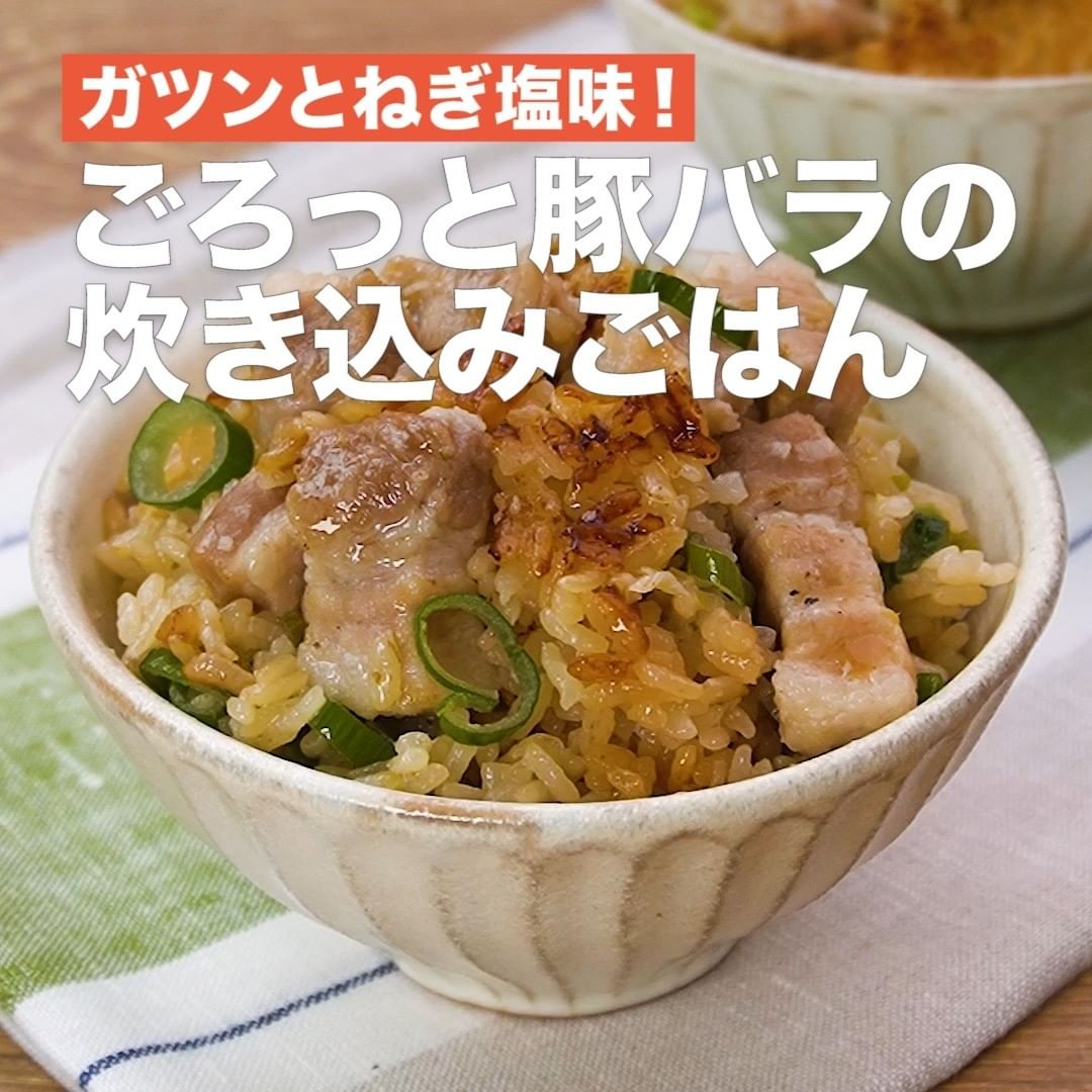 ①<ガツンとねぎ塩味!ごろっと豚バラの炊き込みごはん>