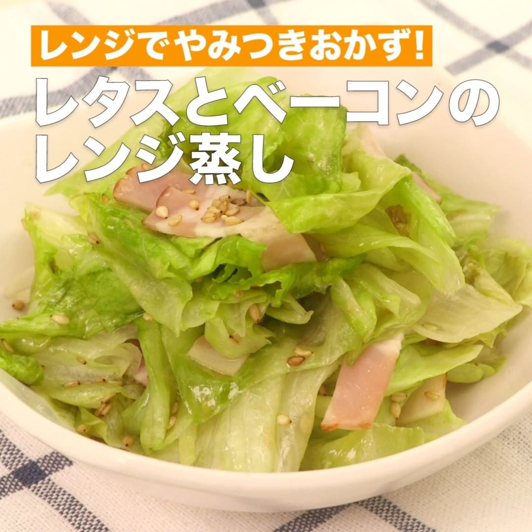 ②<レンジでやみつきおかず!レタスとベーコンのレンジ蒸し>