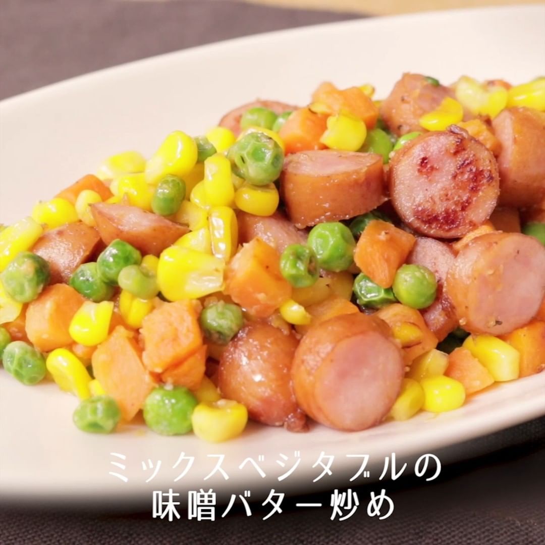 2. フライパンを熱してバターを溶かし、1とミックスベジタブルを入れて中火で炒めます。