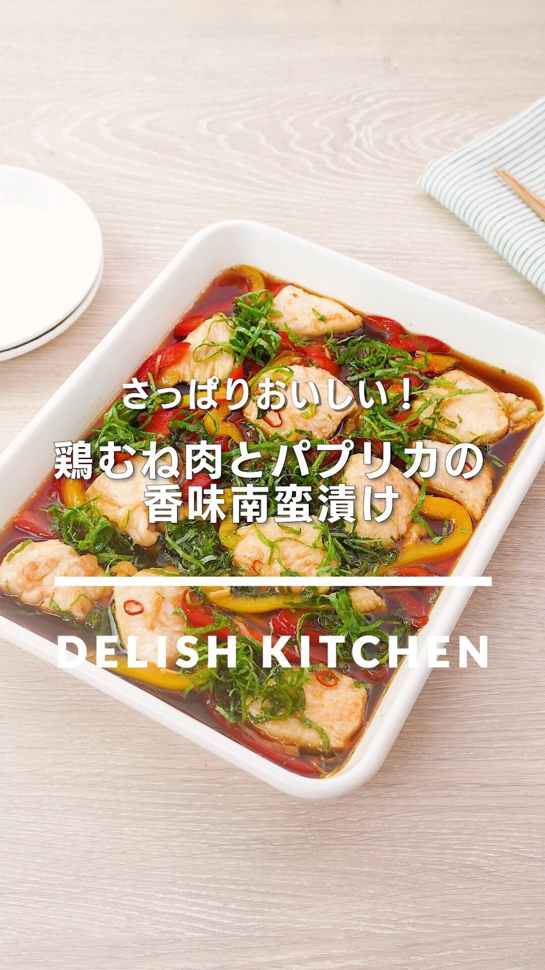 動画の詳細が気になる人はアプリで「鶏むね肉とパプリカの香味南蛮漬け」で検索してみてくださいね♪